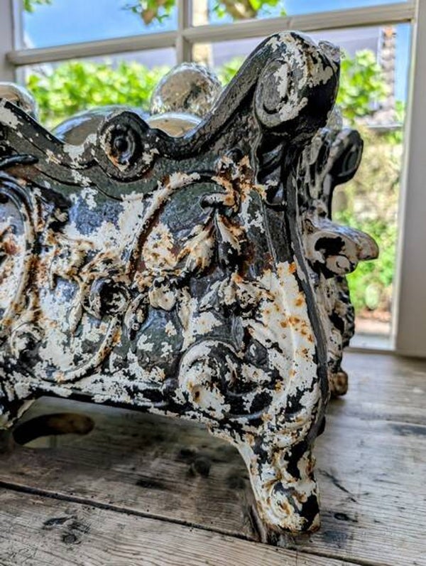 Deze prachtige gietijzeren jardinière is een ware blikvanger in zowel een klassiek interieur als een sfeervolle tuin. Met haar sierlijke lijnen en verfijnde ornamenten straalt ze de elegantie uit van de Rococo/Lodewijk XV stijl, wat haar een tijdloos decoratief object maakt.