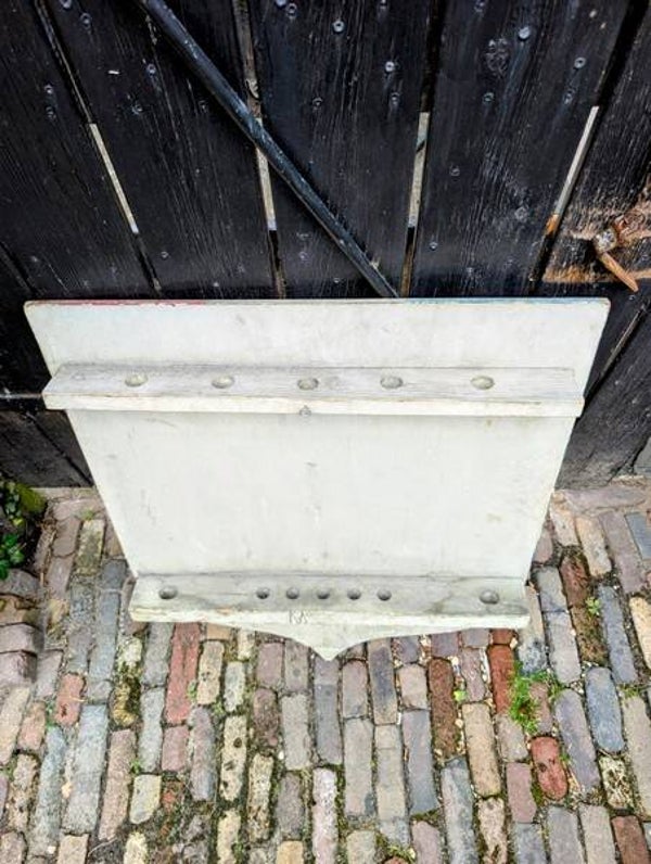 Deze oude Franse houten vlaggenstokhouder heeft jarenlang gediend als wandbevestiging voor vlaggen aan het stadhuis (la mairie) in Frankrijk.