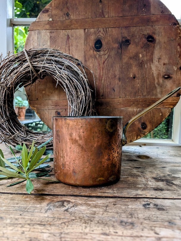 Het koper heeft een warme, klassieke uitstraling en kan eventueel een poetsbeurt gebruiken. Geschikt als decoratief object of als karaktervol keukengerei voor wie houdt van traditioneel Frans kookgerei.