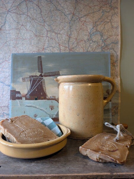 Een warm en tijdloos object dat direct sfeer toevoegt aan elke keuken of brocante setting.