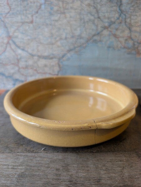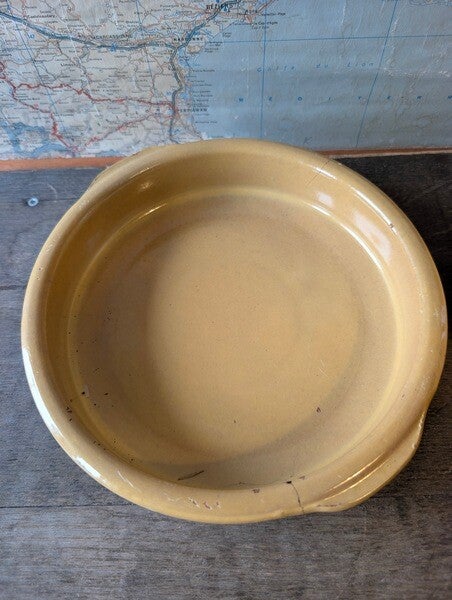 Sfeervol Frans brocante schaaltje van geel aardewerk, een mooi en eenvoudig item dat perfect past in de landelijke keuken. Het schaaltje heeft een kleine haarscheur ( zie foto ), niet storend en passend bij de leeftijd van het stuk.